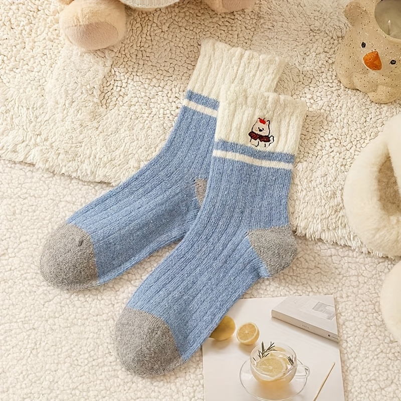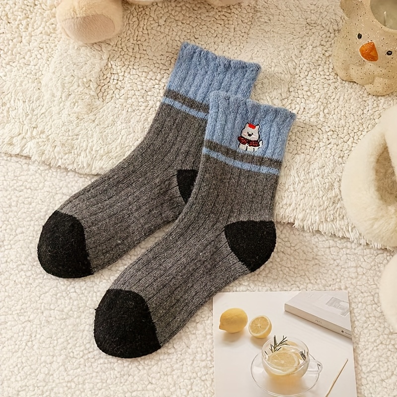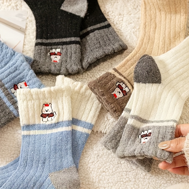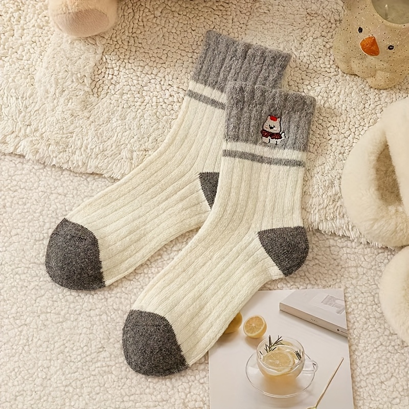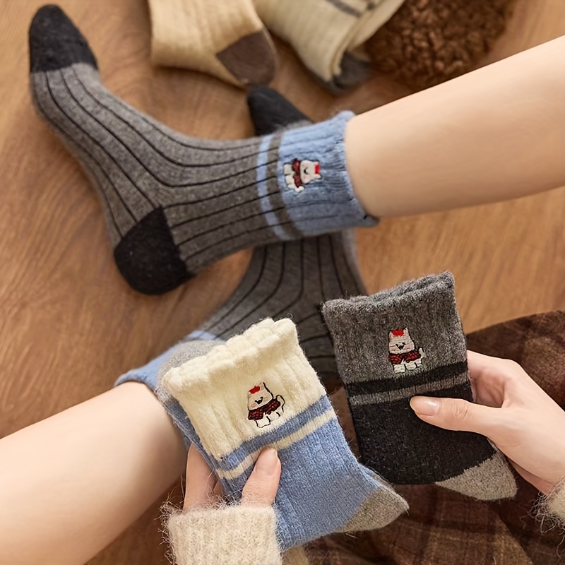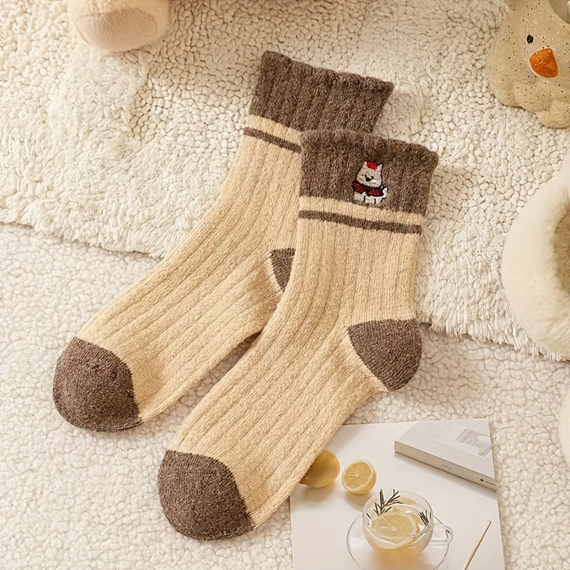 3 Pairs of Cute Cartoon Embroidered Mid Calf Socks | Women'S Luo Kou Tube Version, Warm and Comfortable, Versatile for Multiple Scenes
