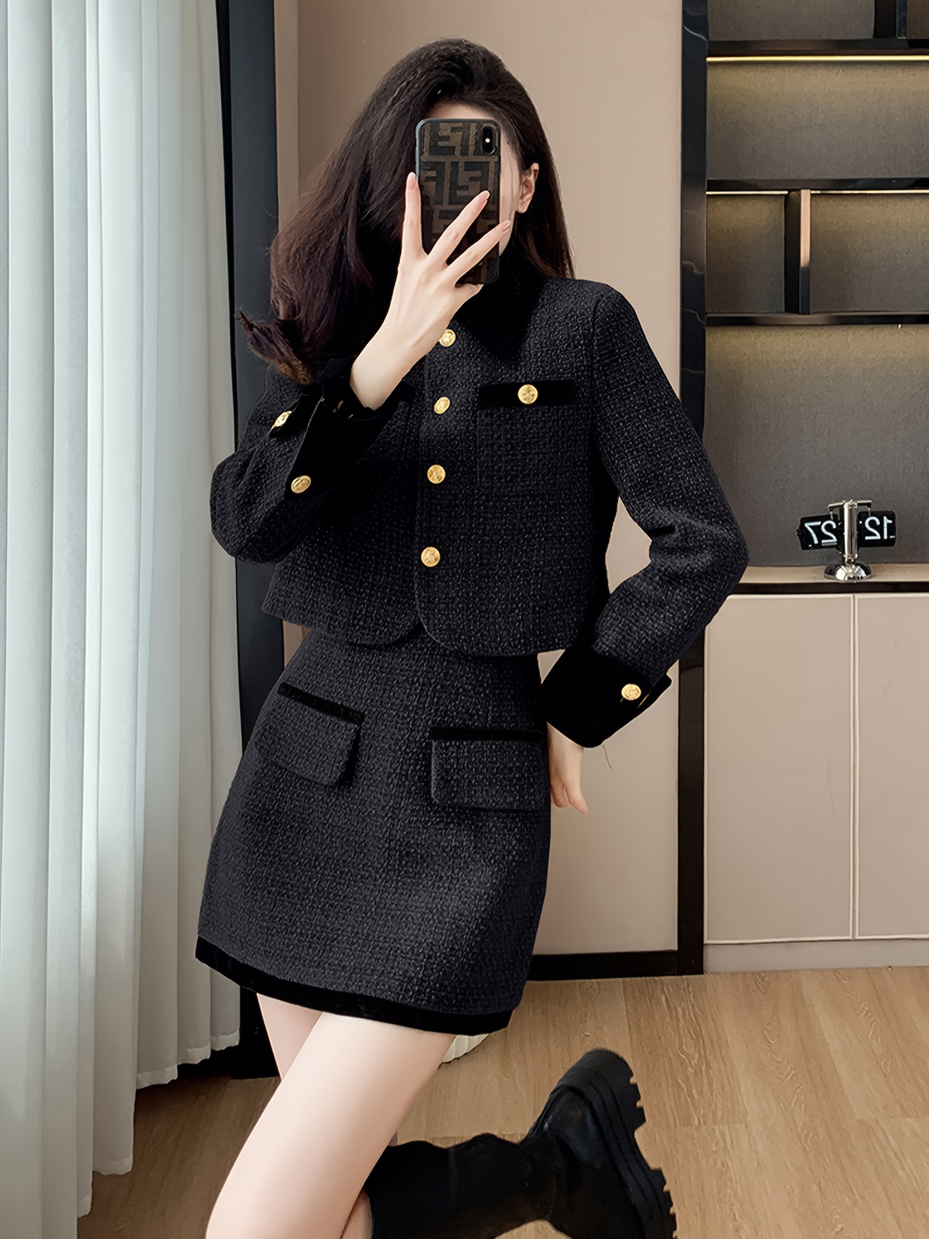 Elegant Two-Piece Set Elegant Two-Piece Set | Women's Autumn Winter Fashion Lapel Collar Button-Up Long Sleeve Top Coat Short Skirt