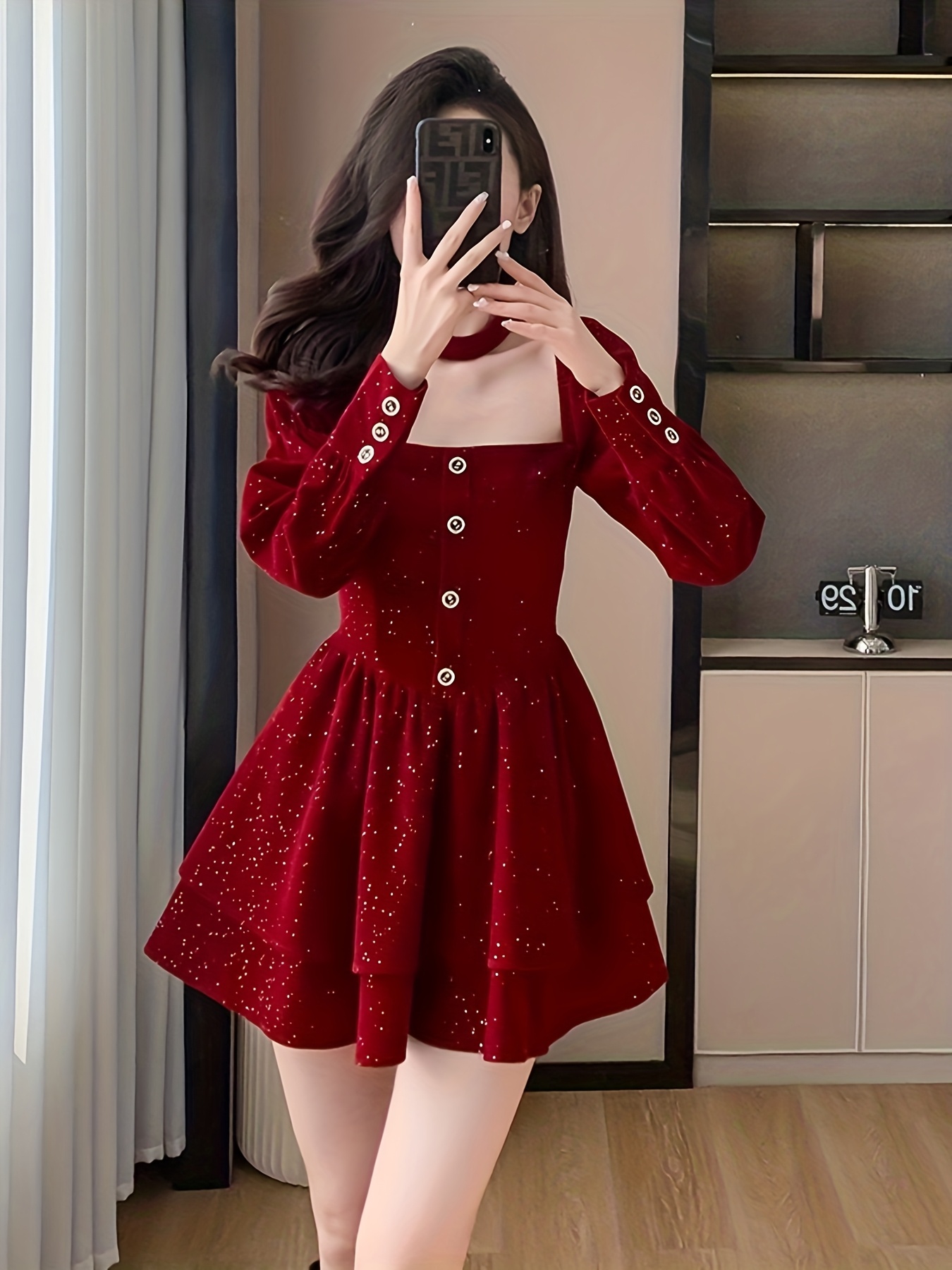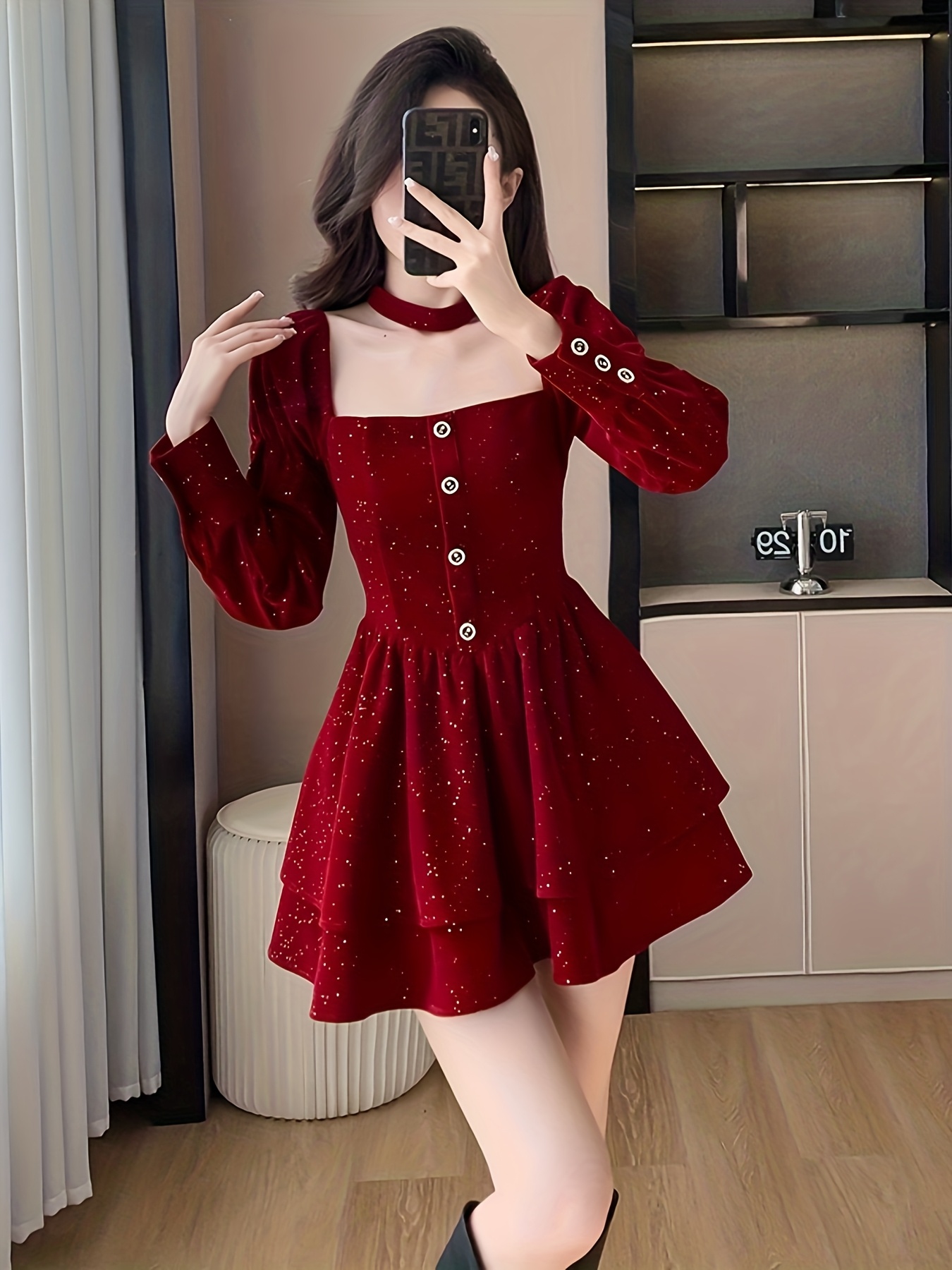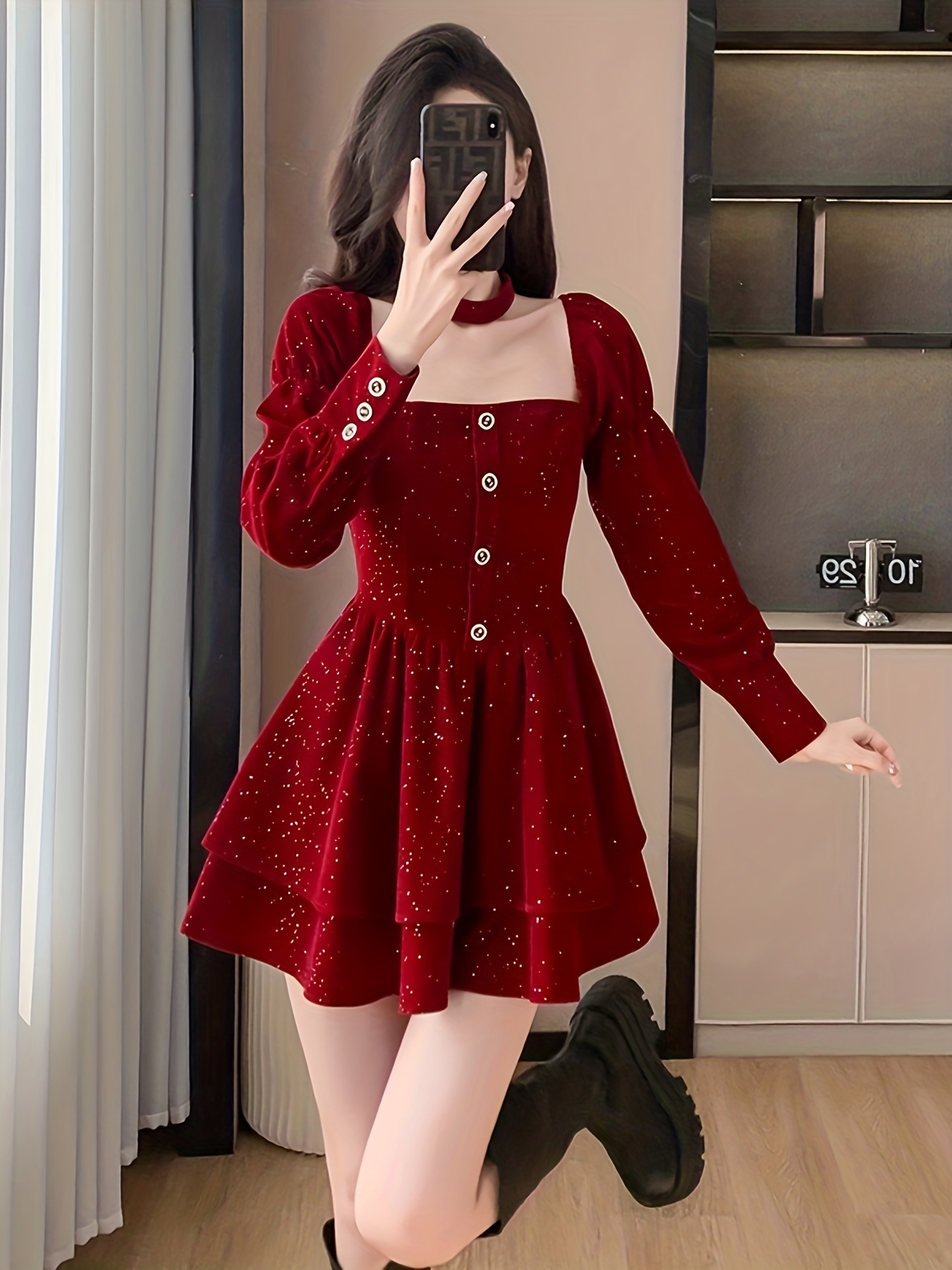 Sweet and Elegant Style Sexy Dress, Winter French Women's Christmas Dress, Red Dress Dress, Christmas Atmosphere Wear Winter Dress