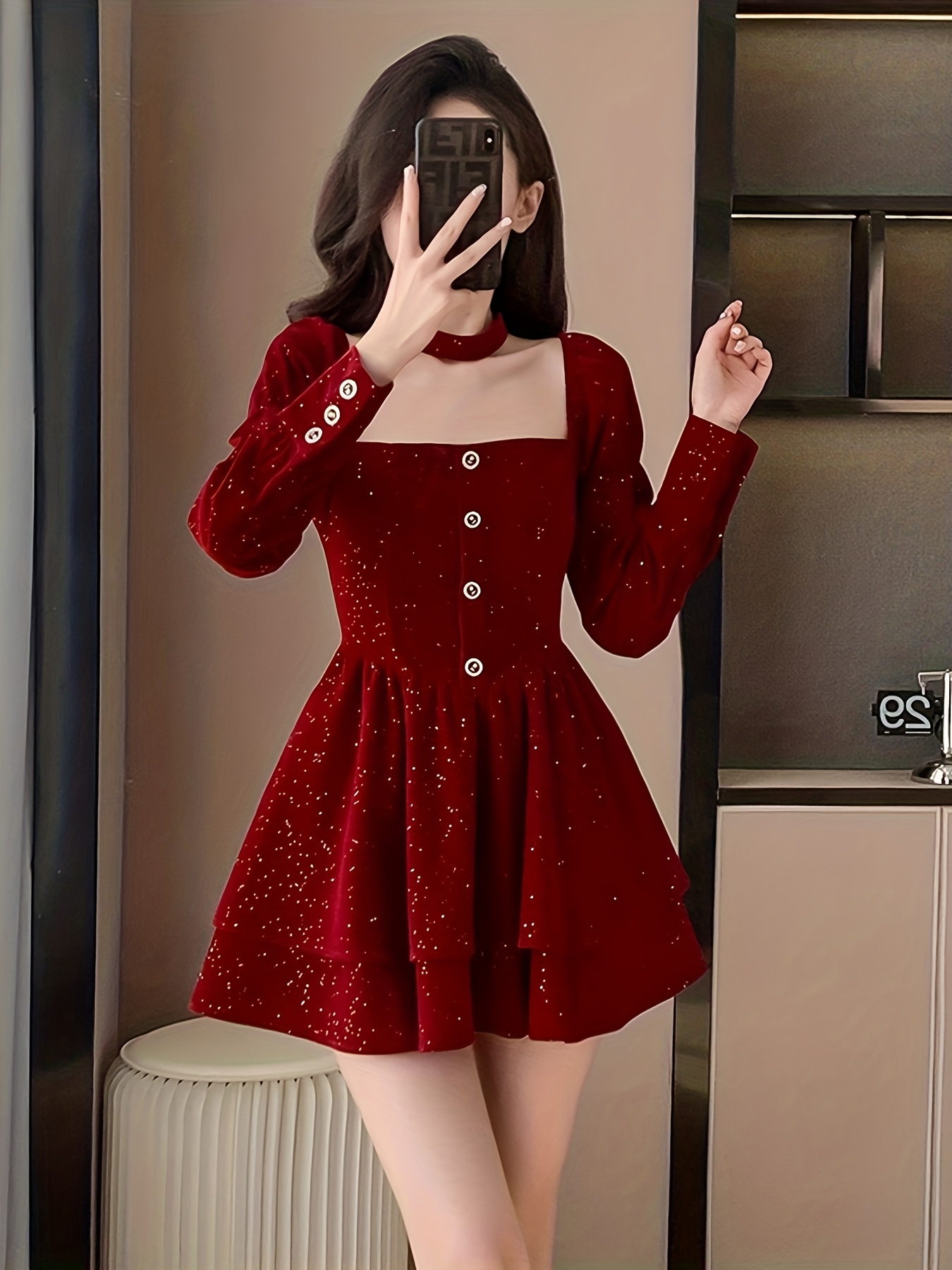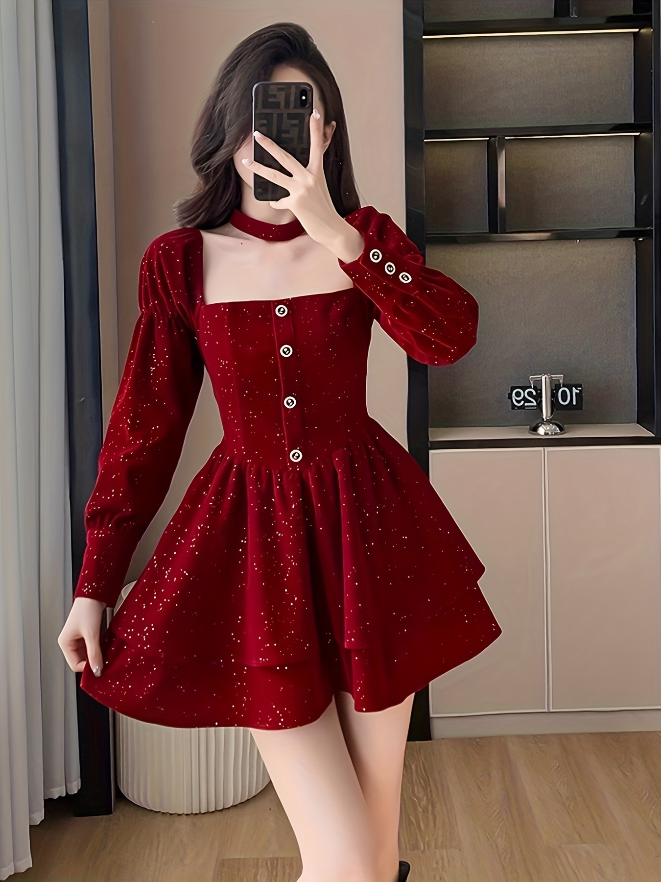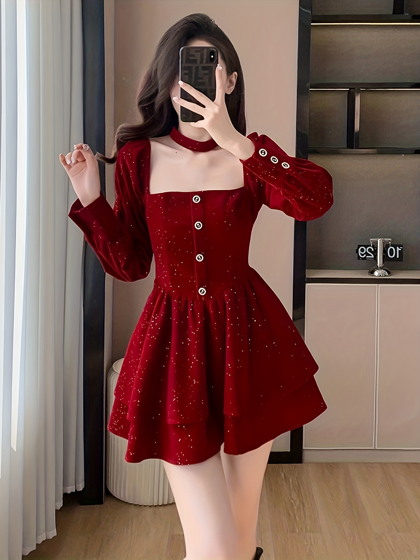 Sweet and Elegant Style Sexy Dress, Winter French Women's Christmas Dress, Red Dress Dress, Christmas Atmosphere Wear Winter Dress